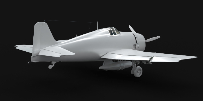 Модель палубного истребителя США Grumman F6F Hellcat. Самолёты выпускались серийно с 1943 года и принимали участие в боях на Тихоокеанском театре военных действий.